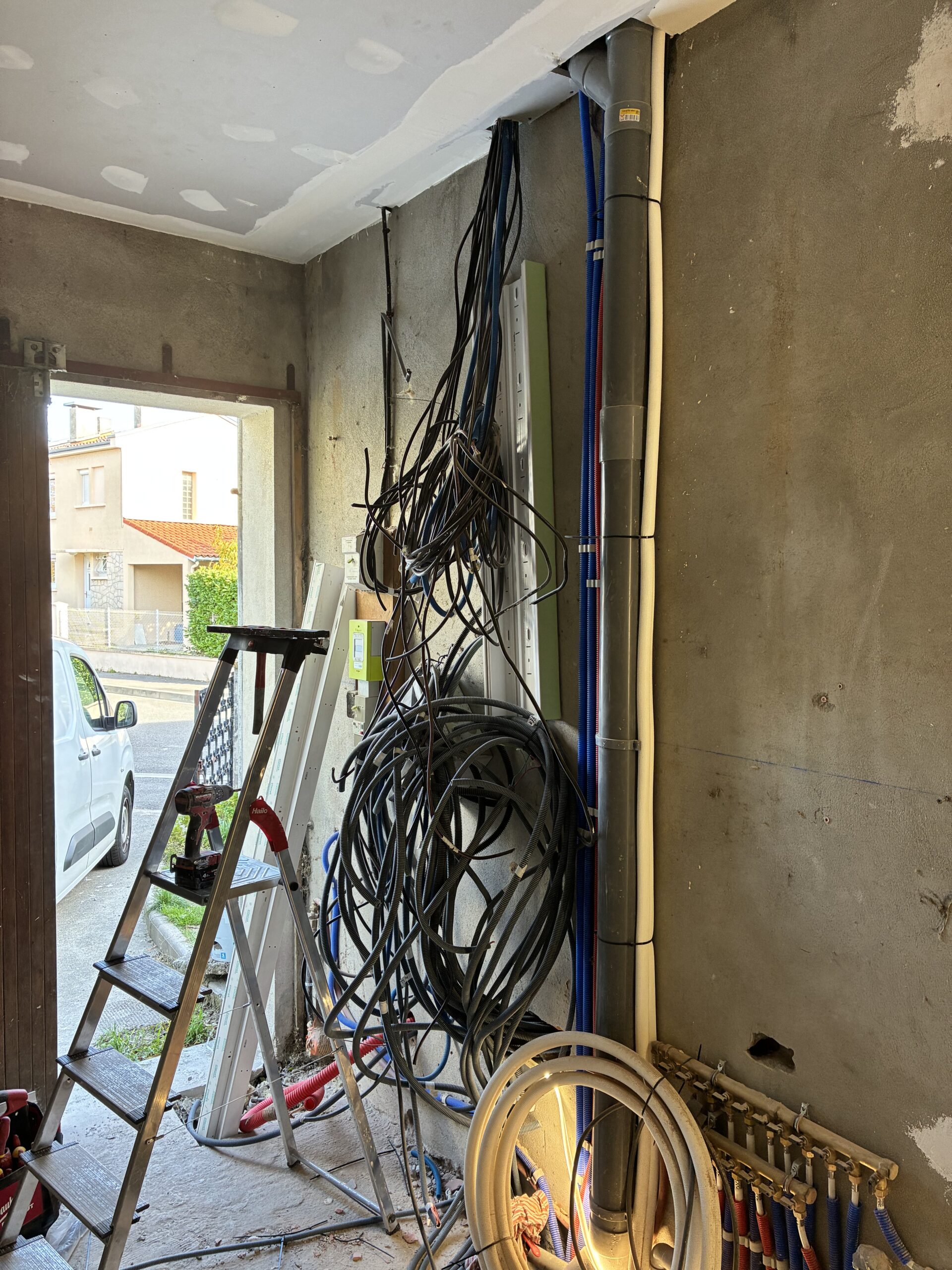Rénovation électrique complète d’une maison. En repartant de 0, dépose de l’ancienne installation.